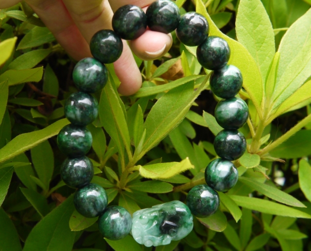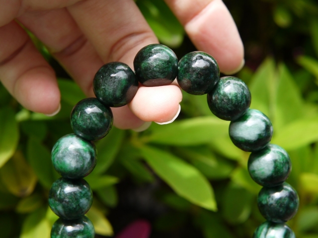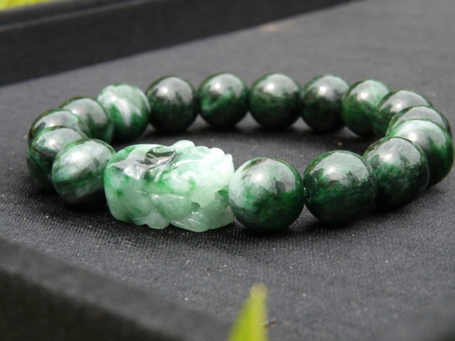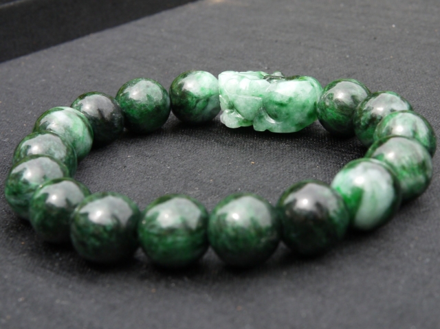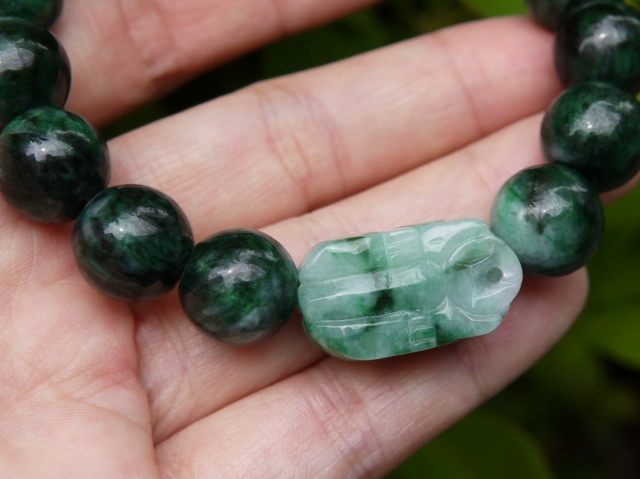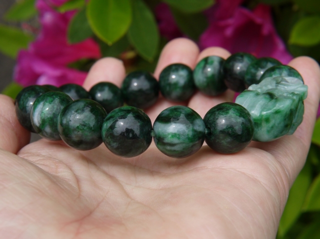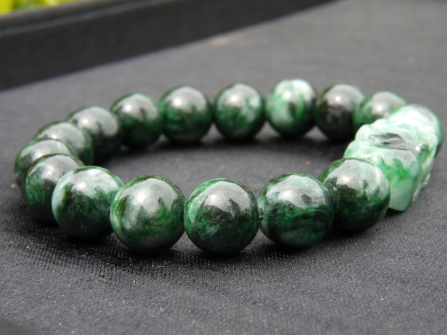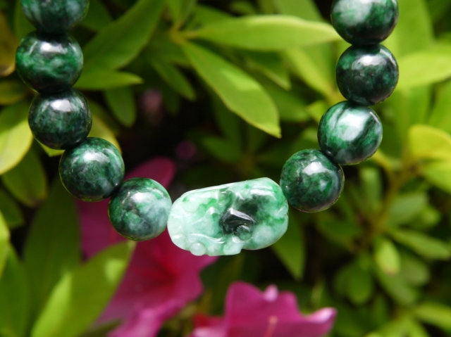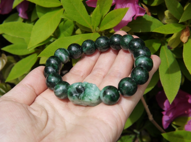 濃い緑とミントグリーンのマーブルが美しいミャンマー産極上翡翠